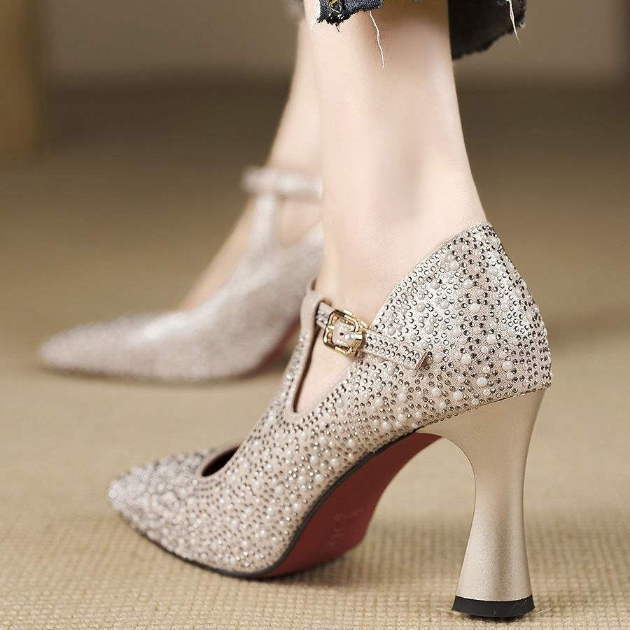 Sparkling rhinestones shape the glamorous silhouette of these premium leather heels, delivering a bold statement look with a lightly cushioned insole.