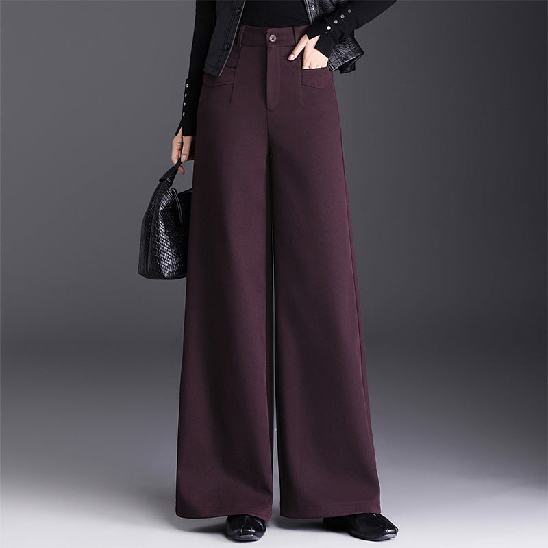 A high-waist structure and wide-leg cut create a fluid silhouette in these statement pants, crafted from smooth, durable fabric that drapes elegantly for a relaxed yet refined look.